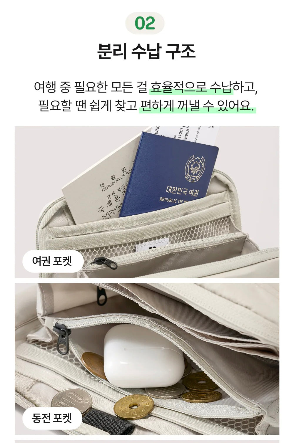 - Passport Pocket — quick access at immigration or boarding